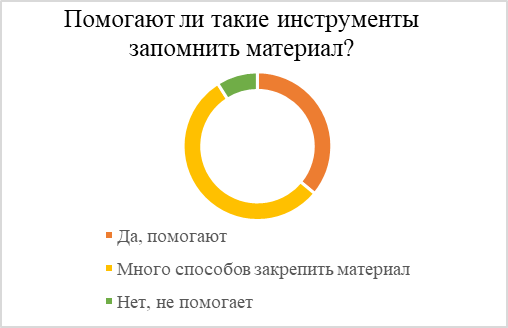 Подчеркивая полезность данных цифровых технологий, 36 % учащихся считают, что они помогают им лучше запомнить учебный материал, делая обучение более увлекательным. 55 % уверены, что такие инструменты предлагают различные способы закрепления материала. Лишь 9 % респондентов никак не оценили такой подход в обучении.